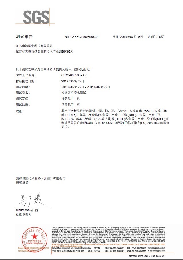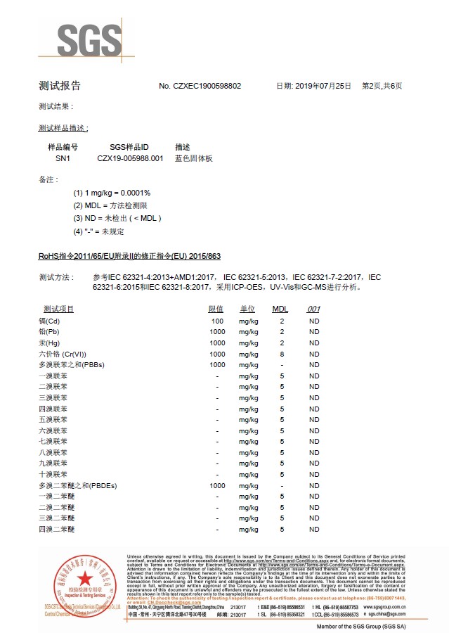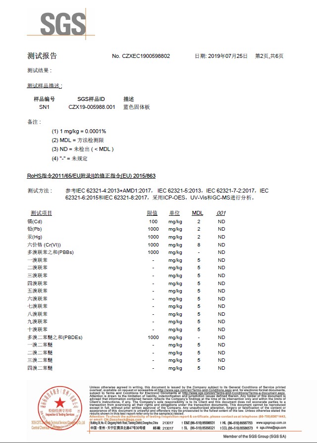 塑料世俱杯(Club WC)官方网站ROHS检测报告